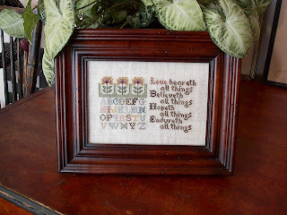 Fabric: 40ct Newcastle linen dyed with walnut ink crystals